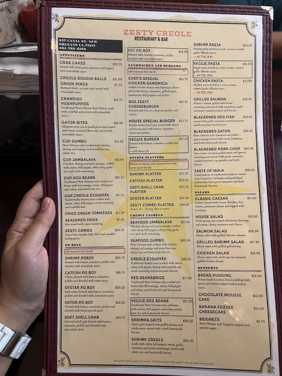 In short, if you’re looking for authentic Creole cuisine that sings with flavor, Zesty Creole should be your next stop. With generous portions and a commitment to quality, your meal here will surely be one to remember. So, bring your appetite and let Zesty Creole take you on a delicious adventure through the heart of New Orleans!